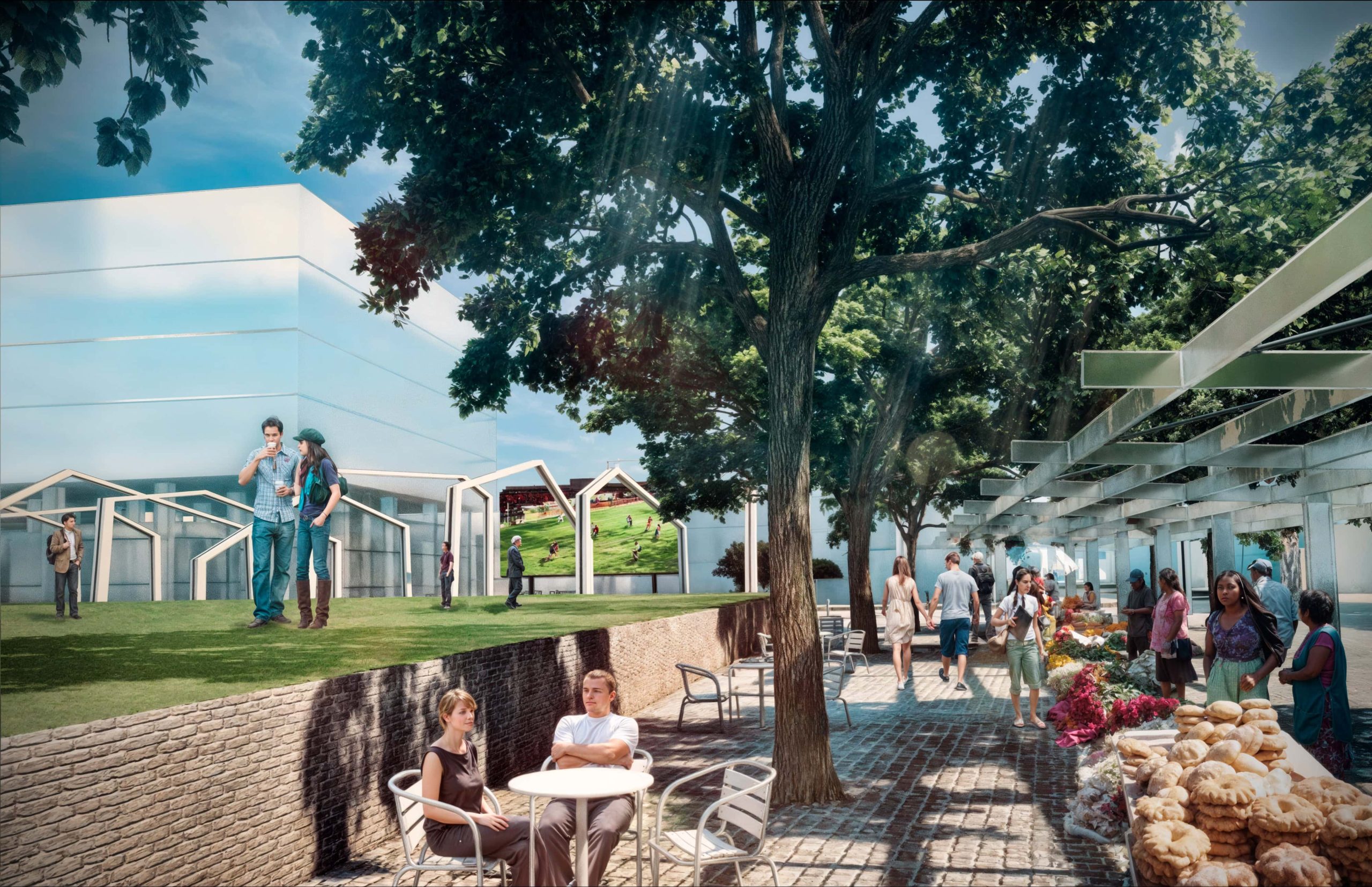 Los edificios de usos mixtos que rodean la plaza proponen una convivencia integrada de vivienda, comercio, oficinas, equipamientos y espacios culturales, configurando una ciudad activa a lo largo del día y de la noche. Esta estructura urbana abierta y flexible permite adaptarse a las transformaciones futuras y estimula la apropiación progresiva por parte de la ciudadanía.
